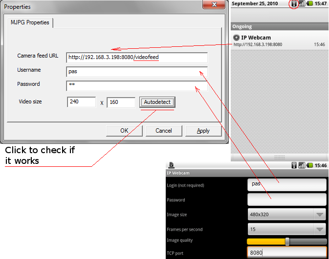 Note: For maximum compatibility set the camera resolution to 320x240.